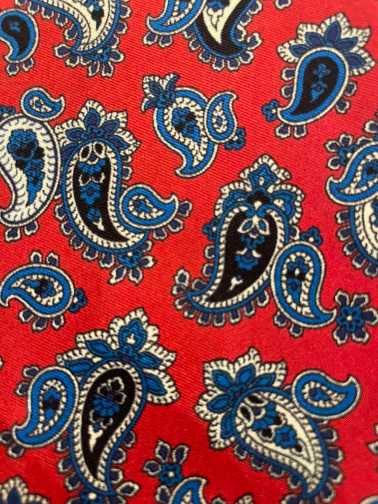Næste: Lommeklud rød med blå/hvid paisley