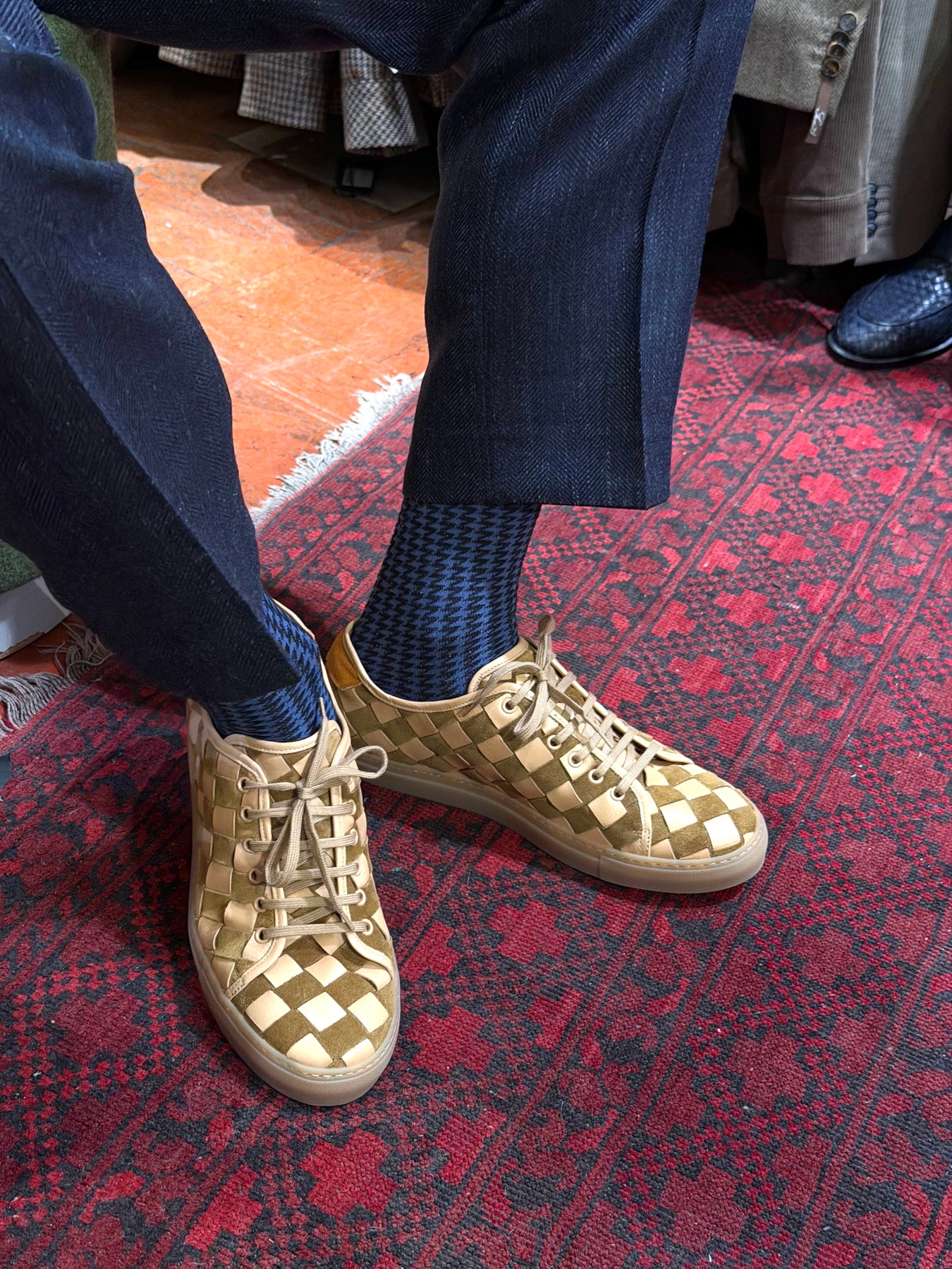 Flettede herresneakers i ruskind og læder